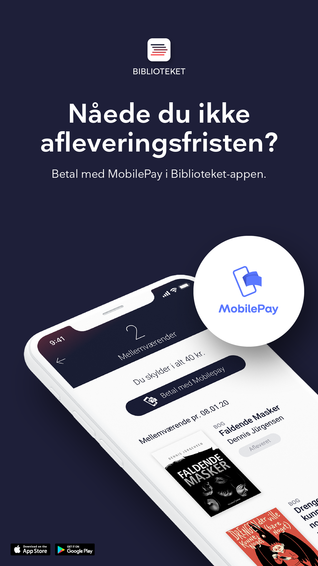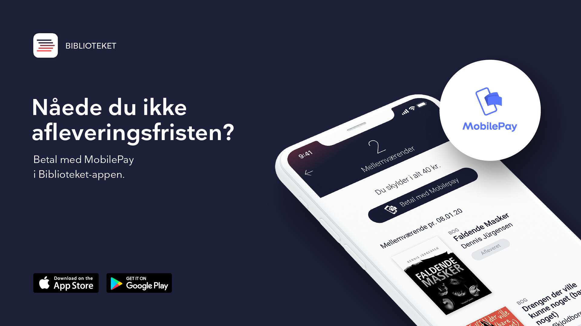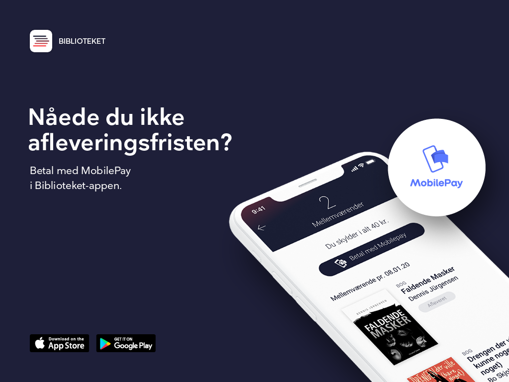 De digitale billeder fremhæver tre forskellige funktioner i Biblioteket-appen. Billederne er specielt lavet til digitale skærme rundt omkring på biblioteket og til brug på nettet.